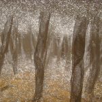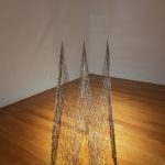 Não se sabe bem por onde começar porque, se a convicção pode ser imensa, o destino é invulgar e caprichoso. E, no entanto, sobrelevando expectativas, arrostando com a corrente dos dias, algo se move nas entrelinhas de um texto descosido e já desconectado da Palavra e da Civilização, que ainda nos permite evocar o desejo de Absoluto e da circunstância, nada despicienda, de nos sentirmos e sabermos humanos. Vestem-nos hoje de fatos multicolores, propõem-nos interpretações de garantida desmesura, futuros de exploração espacial e dos seus recursos próprios, a fim de alimentar impérios e interesses multímodos nas áreas financeiras e das indústrias inovadoras. Seja! Mas não advoguem felicidade, respeito pela compreensão e definição do humano, porque essa foi a função da PALAVRA, no tempo que lhe coube. Não parecerá a muitos mas, este é, de novo, o tempo do deserto que foi anunciado, como se sabe, pela barbárie nazi. Que podemos nós artistas fazer, que eventualmente teremos sido tocados pela vontade de consubstanciar em Obra, dúvidas e incertezas, ou talvez a alegria do Canto e da comum Esperança? Cada obra assumida em percurso singular, abre possibilidades de reflexão e de discussão pública. Cada artista nessa pessoal assunção, arrosta com as dificuldades inerentes à diferença idiossincrática, apenas tendo de saber lidar consigo mesmo. As cedências de circunstância, não advogam uma boa prática artística, pois apenas são induzidas pelo facilitismo de uma sociedade que não entende a Arte como ela o é, e só pode ser: abertura conceptual e anímica, na criação de um mundo de emoções outras. Designada na forma interrogativa: “NADA DE NOVO DEBAIXO DO CÉU?”, Ana Lima-Netto nesta sua exposição individual, invoca a leitura e interpretação do Ecclesiastes, onde encontra a ideia de ciclo dos Elementos e de ligação entre todas as coisas. Na sua lídima interpretação, a artista propõe-se através da INSTALAÇÃO, da ESCULTURA, do DESENHO e dos seus cruzamentos, explorar materiais e técnicas, bem como ao próprio espaço, transmitindo os conceitos de Essência – Impermanência – Leveza. Assumindo a problemática contemporânea no que ela tem de mais generalizado, o seu material de base e constituinte das peças apresentadas, é a rede metálica maleável, de um cinza brilhante, proveniente de sobras de construção ou de utilização doméstica. O método de construção das peças, segundo a autora, começa: “(…) pela submissão dos tecidos de rede a movimentos de tracção e de compressão, bem como ao seu desfiar (total ou parcial) para, posteriormente, serem reconstituídos em formas circulares ou curvilíneas, de um ou vários layers”. No processo construtivo adoptado de criação de múltiplas estruturas através de reprodução modular, encontra a autora paralelo com a auto-replicação da Natureza. (…) É preciso pedir que as ilhas sejam fortes para que lá estejam enquanto nos perdemos para que em silêncio permaneçam mesmo quando alguém procura um canto no meio da multidão. (…) Evocação das Ilhas mais remotas, em A NUVEM Carlos Poças Falcão Só isto bastaria para situarmos a autora e as suas propostas num contexto de reivenção e de valorização do eternamente outro-sendo o mesmo, no que alguns adoptando terminologias de recentíssima extracção, designam como de “computador quântico universal”. A titulação das peças apresentadas, se recupera conceitos do Ecclesiastes, adquire aqui uma carga poética, seguramente desejada pela autora. Exemplifico: “Uma geração vem, outra vai”; “O que foi isso é o que há-de ser”; “Tempo de nascer”; “Na multidão dos sonhos, há vaidades”; “Tudo quanto desejaram os meus olhos, não lhes neguei”; “Todos os rios vão dar ao mar, contudo ele não se enche”. Carga poética, que este Livro de culto e do Culto, numa circularidade quase epicurista, não deixa de possuir. Não quero terminar esta curta introdução a uma exposição de Arte desta dimensão, sem referir excelente texto do Pe. João Norton de Matos, em Catálogo de Exposição datada de 2014, com participação de alguns artistas conhecidos. Disse ele então, a concluir: “(…) O artista deseja hoje testar as conotações espirituais das suas obras, nas quais procura uma outra concepção de ser humano, não mediatizado, não avaliado economicamente, não consumido como produto, mas deixando espaço ao silêncio, à escuta, ao acolhimento, ao espanto e mesmo ao êxtase.” Não saberia terminar melhor!