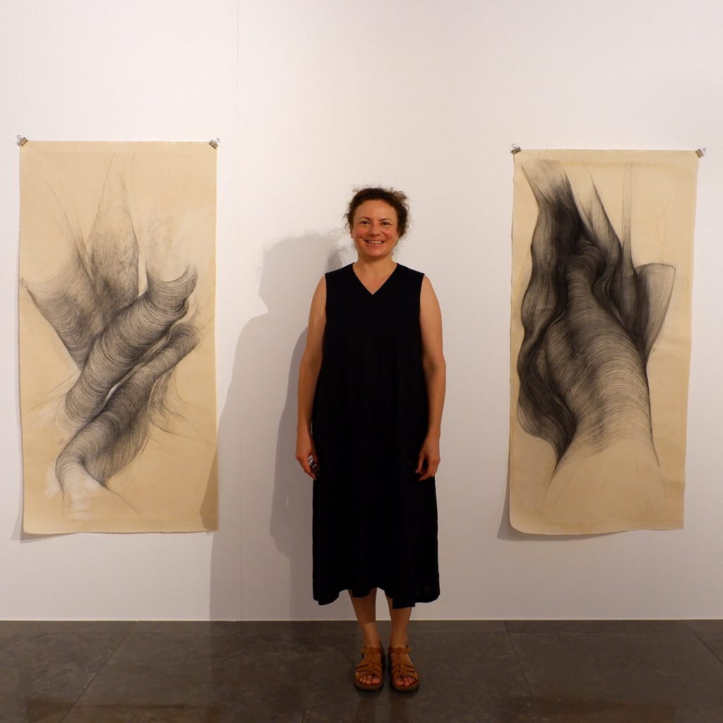 Desde 2017, privilegia o desenho a carvão sobre tela e interessa-se pela metamorfose das plantas, especialmente pelo crescimento da árvore cujo carácter orgânico sublinha.