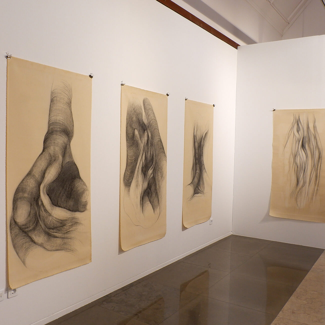 Estas séries de desenhos inscrevem-se no prolongamento da série anterior realizada a partir das Ficus macrophylla do Jardim da Estrela e da Praça do Principe Real, apresentada em julho 2020 na exposição Do jardim tropical ao carvão vegetal: o desenho na linha das metamorfoses, na Sociedade Nacional de Belas Artes, em Lisboa.
